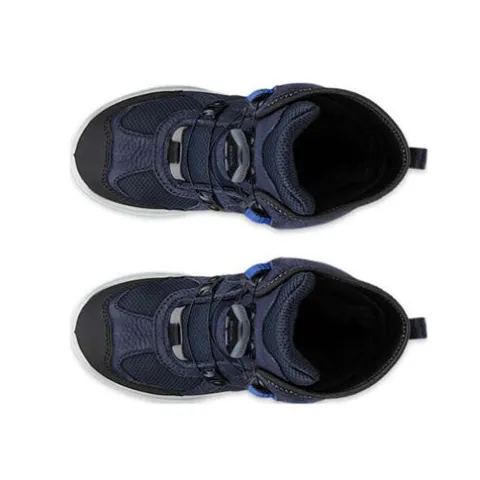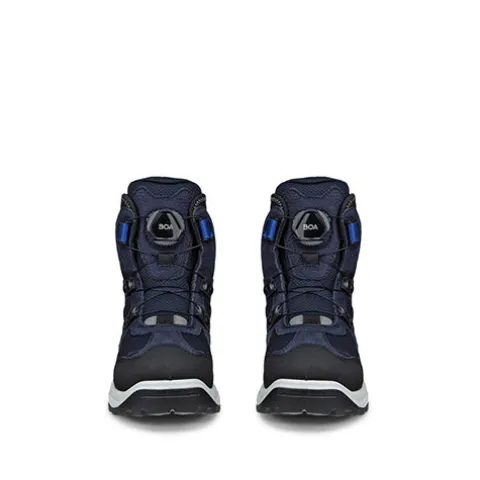 Smart og praktisk Snow Mountain Night Sky støvle med en robust overdel af nubuck og tekstil med en refleksdetalje på hælen. Støvlen lukkes med det justerbare BOA® Fit system, som er nemt for små fingre at bruge, og en trækfane på hælen gør det nemt at træde i støvlen. Skaftet og pløsen er polstret for ekstra komfort og beskyttelse, og med det elastiske stof i åbningen tilpasser støvlen sig behageligt til anklen. Indvendig har støvlen et varmt foer, og sammen med en åndbar og 100 % vandtæt GORE-TEX-membran holdes fødderne varme og tørre i vintervejret. Den udtagelige indersål er isolerende og hjælper med at holde fødderne varme. ECCO FLUIDFORM™ Direct Comfort Technology skaber en fleksibel og let mellemsål, der giver en finjusteret balance mellem stødabsorbering og komfort, kombineret med en slidstærk, affjedrende gummiydersål, der giver et godt fodfæste. I denne støvle får du den perfekte kombination af udtryk og funktionelle egenskaber med tørre fødder i vådt vintervejr til følge.
