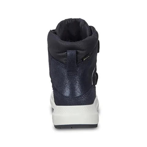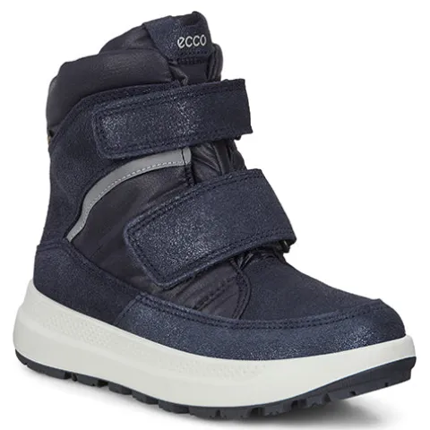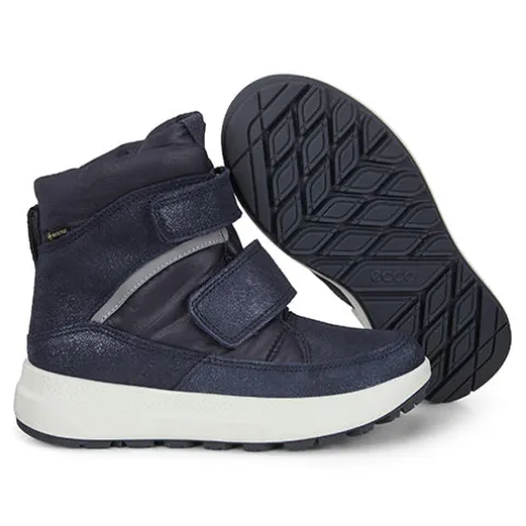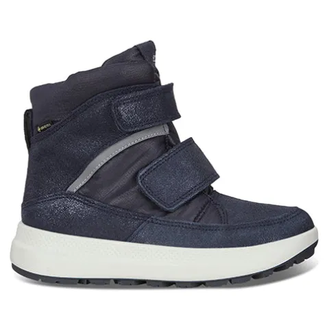 ECCO SOLICE K-støvlen er lavet af en kombination af tekstil og metallisk ruskind og er designet til at håndtere kolde vintereventyr. Denne model giver holdbarhed og et godt vejgreb takket være ydersålen af gummi. Et alsidigt look, der går over anklen og har dobbelt velcrolukning for en behagelig og justerbar pasform. Med metallisk ruskind for en glitrende effekt og refleksdetaljer.