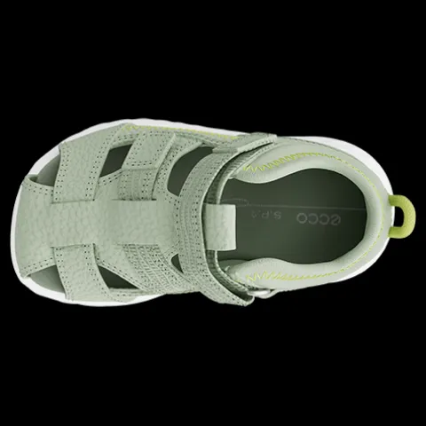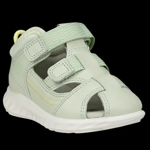 Superfin Infant sandal med lukket tå og hælkappe for ekstra beskyttelse. Overdelen er af glat skind med polstret tekstil i åbningen samt en trækfane på hælen. Sandalen lukkes med to velcroremme over forfoden. Den åndbare skindindersål er komfortabel, og ydersålen er stødabsorberende.