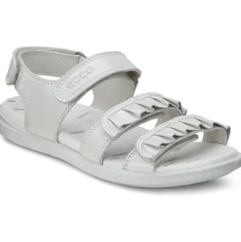 Rigtig fin børnesandal med flæser på de to forreste velcroremme. Overdel i blødt skind, der er designet til naturligt at tilpasse sig til foden. Velcroremmen bagom hælen gør skoen let at tage af og på. DIP-ydersålen i ét stykke i PU er let og robust nok til udendørs leg. Skindforet giver ekstra polstring og støtte.