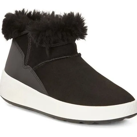 Kort støvle fra ECCO i dobbeltsidet, blødt skind. Ægte lammeuldsfor holder fødderne dejligt varme. Gummibeklædt læderhæl beskytter mod vind og vejr. Den sprøjtestøbte sål af PU med gummi, står godt fast i glat føre.