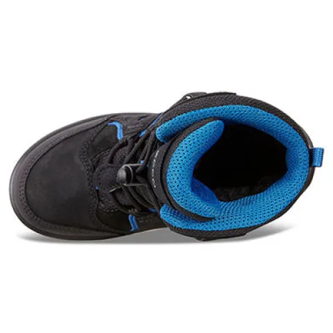 Praktisk støvle fra ECCO med varmt for og 100% vandtæt GORE-TEX®membran. Støvlen lukkes og reguleres med tekstilsnørebånd med anoraklukning, så det er nemt for barnet at tage støvlen af og på. Udtagelige indersåler samt lette og fleksible Pu-såler.