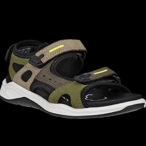 Lækker sandal med en overdel af tekstil samt forskellige lædertyper, bearbejdet i ECCOs garverier, foret med åndbart tekstil, der hjælper med indvendig temperaturkontrol. Sandalen lukkes med tre velcroremme (forfod, vrist og hæl) for en optimal tilpasning til foden, imens en stabilitetsrem på ydersiden giver ekstra støtte langs fodens udvendige konturer. Den mikrofiberbeklædte dæksål giver komfort hele dagen. Den lette mellemsål giver god affjedring og komfort, mens den fleksible og slidstærke ydersål sikrer forbedret fodfæste og giver små fødder i voksealderen den nødvendige støtte og komfort. Herudover er den stødabsorberende ydersål unikt to-tonet med en gummi-del og en PU-del.