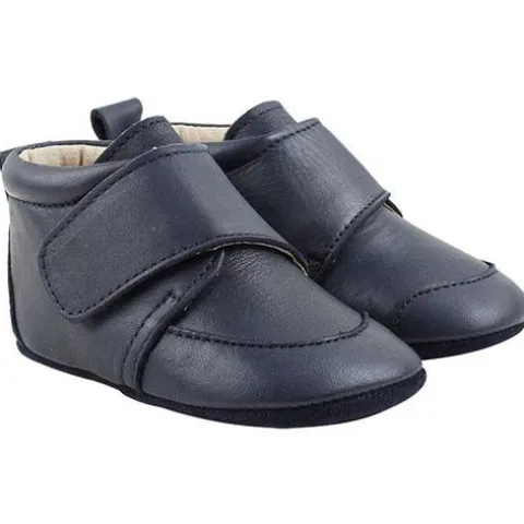 Blød babysko fra En Fant med bred velcro over foden og skind indvendig.