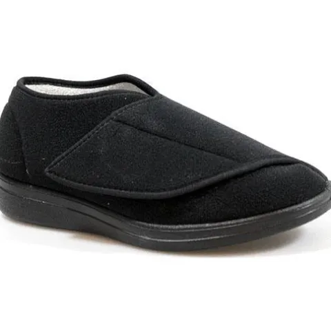 Hjemmeskoen rummer en bred fod og har en bred velcro, så de er lettere at komme i.