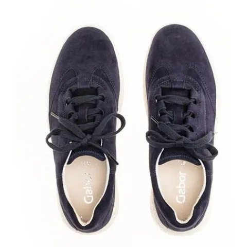 Smart Gabor sneaker med sporty såler. Gabor skoen har god rummelighed omkring forfoden og indersålen kan tages ud. Indvendigt er der skindfoer og dæksålen er også i skind.
