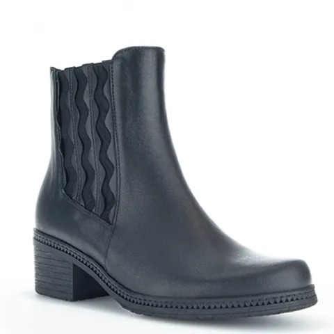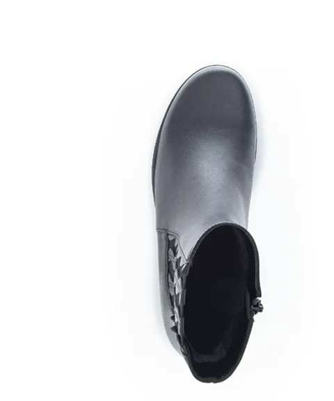 Super fin støvle fra Gabor med flot applikation isat på ydersiden af støvlen. På indvendig side er der lynlås og støvlen er foret med et tyndt fleece foer. Støvlen er rummelig men ikke med ekstra vidde.