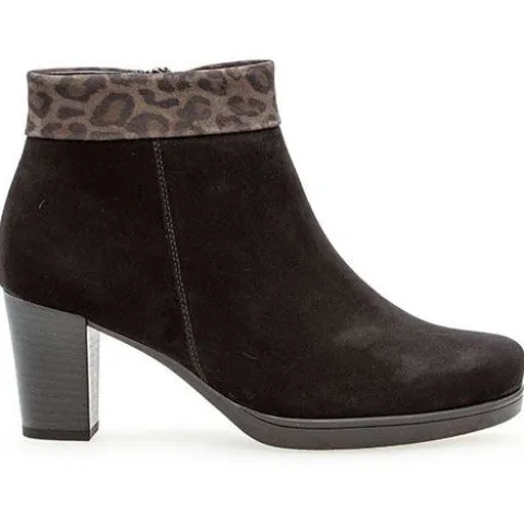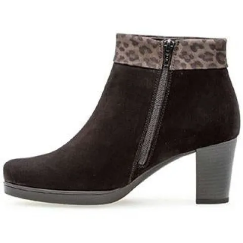 Elegant kort støvle fra Gabor med flot leoparddetalje øverst på skaftet. Støvlen har tekstilfor og super blød dæksål.
