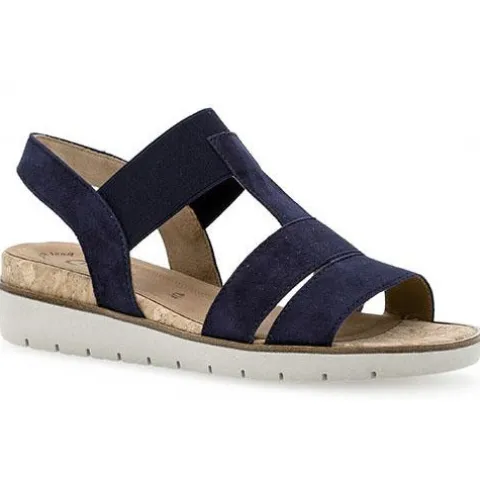 Super komfortabel sandal fra Gabor med kilehæl og lille plateau. Overdelen er lavet i lækkert blødt ruskind med elastik over vrist.