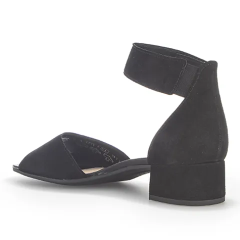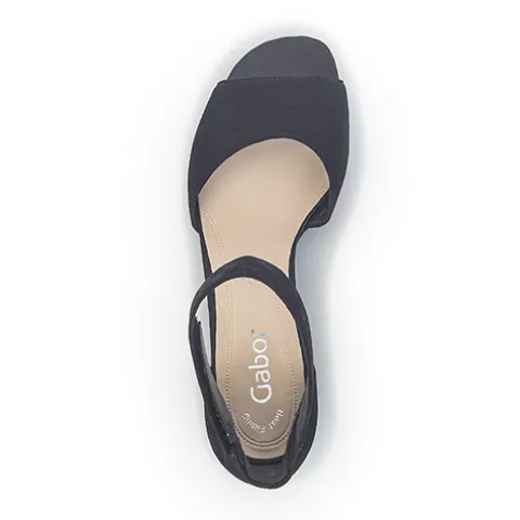 Gabor sandal med lille hæl. Sandalen har ankelrem som justeres med velcro, hvilket gør det nemt at tage af og på.