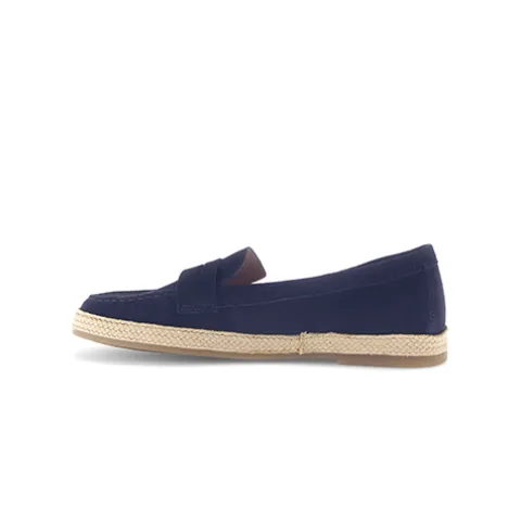 Komfortabel pennyloafer med en overdel af blødt ruskind med en kant af flet. Den skindbeklædte indersål er polstret og komfortabel, og den fleksible gummiydersål er stødabsorberende med et godt fodfæste. Fås i halve størrelser.