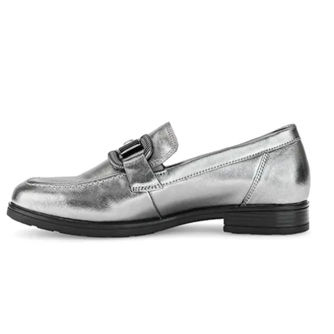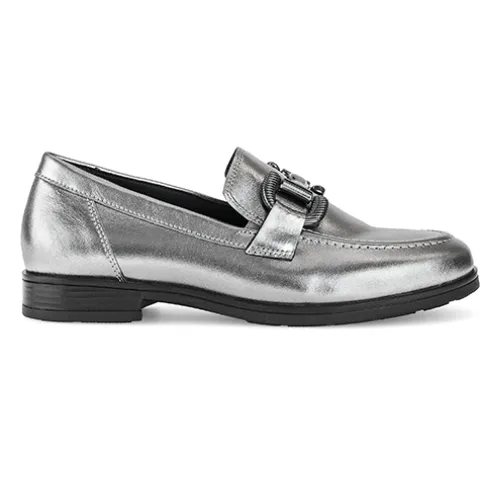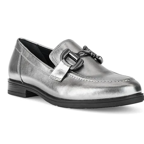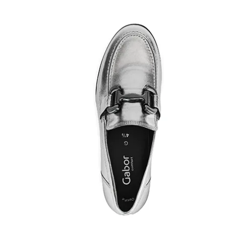 Flot loafer med en overdel af glat skind fra certificerede garverier, dekoreret på forfoden med et bidsel i mørkegråt metal. Med vidde G er der ekstra rummelighed om forfoden og mere bevægelsesfrihed for tæerne, og små elastikkiler ved åbningen sørger for, at skoen tilpasser sig foden i løbet af dagen. Den udtagelige indersål er polstret og komfortabel og er desuden lavet af genbrugsmaterialer fra Gabors egen produktion. Den fleksible gummiydersål er stødabsorberende med et godt fodfæste. Fås i halve størrelser. Her får du et par loafers perfekt til både hverdag og fest.