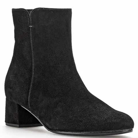 Flot støvle i et klassisk design. Overdelen er af ruskind, foret med tekstil. Lukkes med en lynlås på indersiden. Den 5 cm høje blokhæl giver et ekstrafeminint look. Fås i halve størrelser.