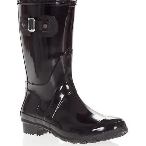 Lampo gummistøvle fra G&G med pyntespænde på ydersiden af skaftet. Støvlen er lavet i blankt pvc, har tekstilfor og indersålen kan tages ud. Robust ydersål der er blød og fleksibel.