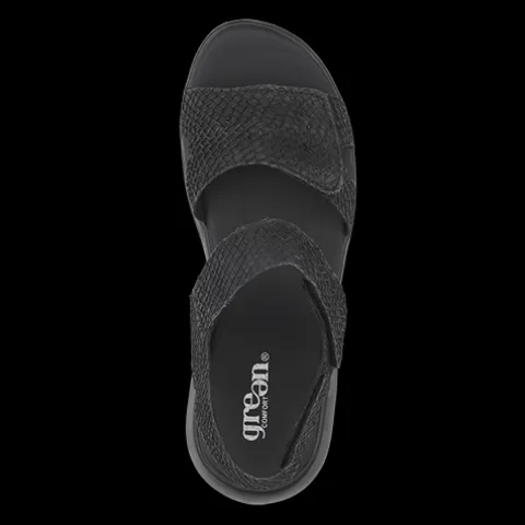 Blød og lækker Leaf sandal fra Green Comfort. Overdelen er lavet af lakseskind fra Japan. Sandalen er let og fleksibel, og den reguleres og lukkes med tre velcroremme – en rem om hælen, en bred rem over vristen og en meget bred rem over forfoden.