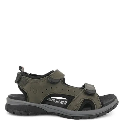 Lækker Varberg Vince sandal med en overdel af nubuck fra certificeret garveri foret med tekstil. Sandalen justeres og lukkes med tre velcroremme (forfod, vrist og hæl), og med vidde H er der god plads til den bredere fod. Den formstøbte fodseng med 4 mm Energyfoam er blød og polstret, imens den fleksible ydersål er stødabsorberende og robust med et godt fodfæste.
