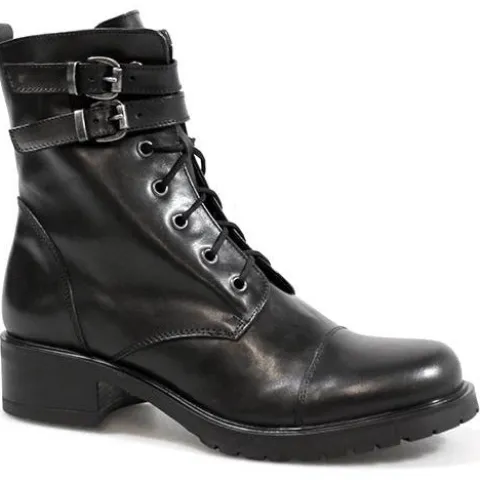 Bikerstøvle fra Hosis i lækkert blødt skind. Støvlen har fine detaljer med spænder og snørelukning. Indvendig er der lynlås, så de er lette at komme i. Støvlen er foret med skind og har dæksål i skind.