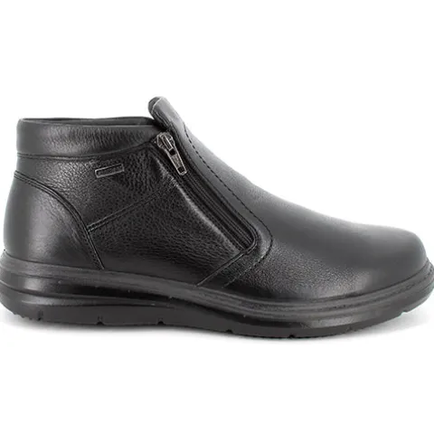 Lækker ankelstøvle fra Imac med en overdel af glat skind. Støvlen lukkes med lynlås på begge sider af forfoden, så der er ekstra god plads til at stikke foden i støvlen, som i øvrigt har ekstra vidde og dermed god plads til forfoden og tæerne. Udover et åndbart foer har støvlen den vandtætte og åndbare ImacTEX-membran, så fødderne holdes lune og tørre. Den komfortable indersål kan tages ud, og ydersålen er stødabsorberende og meget fleksibel og giver med sit mønster et fint fodfæste.