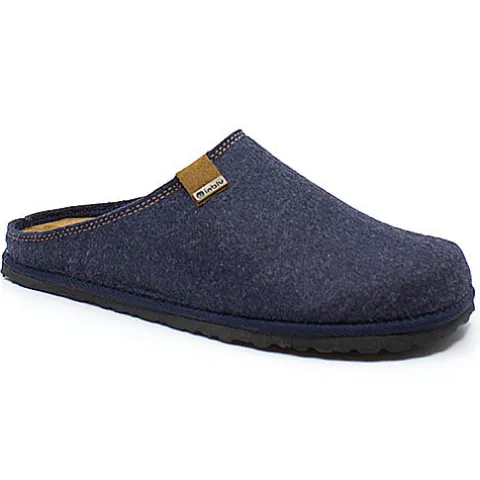 Inblu hjemmesko med skind på udtagelig indlægssål. Overdelen er lavet i filt.