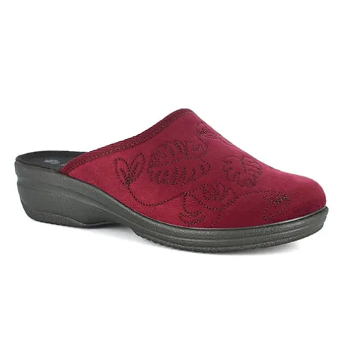 Sød slippers-hjemmesko med en overdel af tekstil med blad-syninger. Den stødabsorberende sål med kilehæl både giver et behageligt løft og understreger det feminine look.