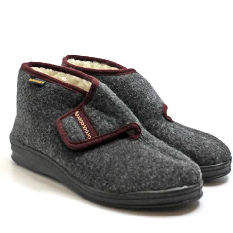 Dejligt varm hjemmesko med en overdel af tekstil og et varmt uldfoer indvendig. Hjemmeskoen har et højt skaft og lukkes med bred velcrorem over vristen. Den fleksible ydersål er stødabsorberende. Hjemmeskoen rummer en høj vrist.