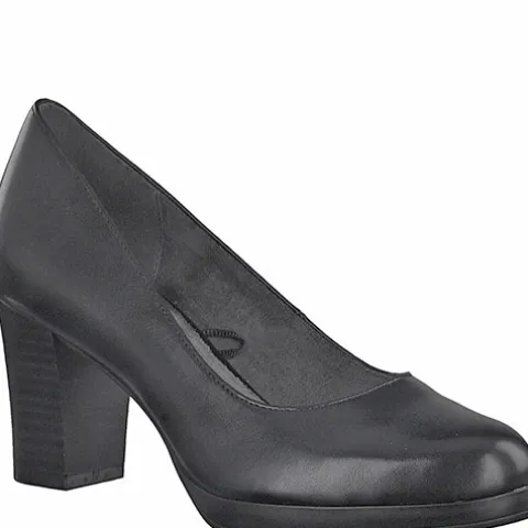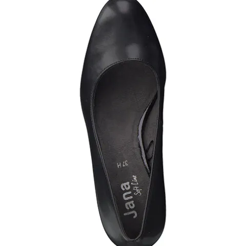 Flot og feminin plateaupump fra Jana i imiteret nappa. Hælhøjden er 8 cm, og med en plateausål under forfoden på 10-13 mm føles hælhøjden som ca. 7 cm. Hælen er kraftig, og indersålen er med den bløde Soft Line-teknologi.