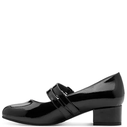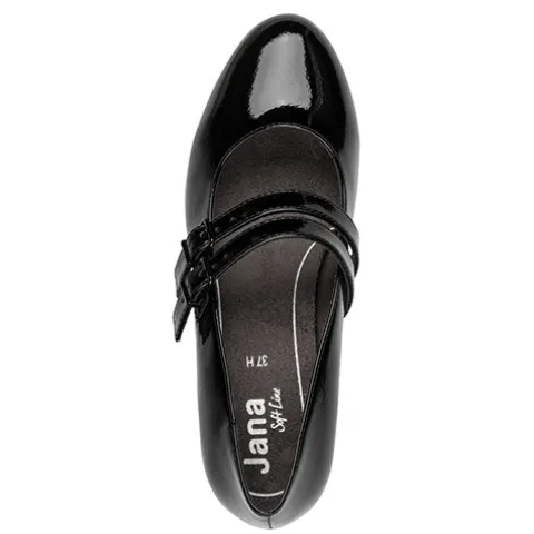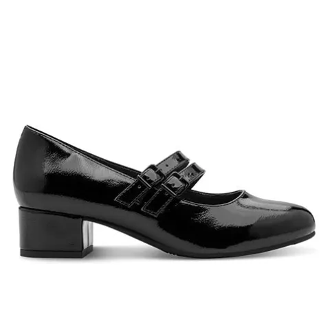 Flot sko i Mary Jane-stil fra Soft Line-serien med en overdel af lakeret syntet. Skoen lukkes med to remme med justerbare spænder over vristen. Den polstrede Soft Line-indersål er ekstra komfortabel, og med en vidde H-læst er der god plads til den bredere fod. Ydersålen under forfoden er af gummi og giver et godt fodfæste, og den robuste blokhæl med 4 cm højde er beklædt med syntetlak. 100 % vegansk.