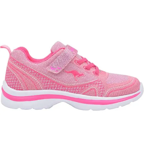 Rigtig pige glimmer sko fra Kangaroos med velro og elastik over foden. Skoen er godt polstret med tekstil. Skoene er lavet i et blødt og isolerende materiale. Ydersålen er lavet af gummi.