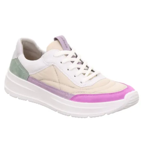 Supersmart sneaker i fine farvekombinationer. Overdelen er af tekstil og ruskind, og skoen lukkes med snørebånd. Med vidde G er der god plads til den bredere fod. Den skindbeklædte indersål kan tages ud, og den fleksible ydersål er stødabsorberende. Fås i halve størrelser.
