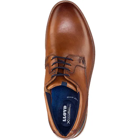 Lloyd sko med X-motion indlægssål, der har stødabsorbering og giver optimal støtte og skåner hele kroppens bevægelsesapparat. Super flot brun sko med lys ydersål for et lettere udtryk.