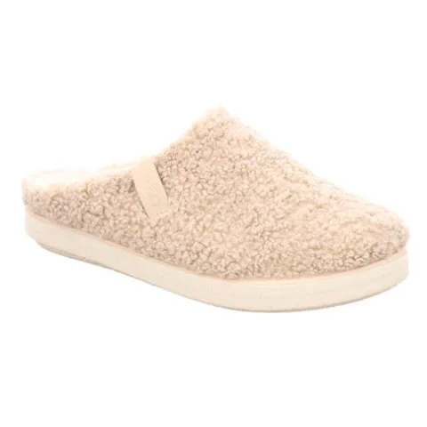Lækker slippers-hjemmesko med en overdel af tekstil i uldlook med et blødt tekstilfoer. Den udtagelige indersål er polstret, komfortabel og støddæmpende, og gummiydersålen er støddæmpende med et godt fodfæste. Du får et diskret løft med hælhøjden på 3,5 cm samt en plateauhøjde på 1,5 cm.