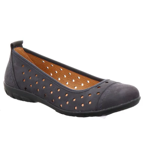 Dejlig og luftig ballerinasko med en overdel af perforeret nubuck. Den udtagelige indersål er åndbar og komfortabel, og den fleksible ydersål er stødabsorberende med et fint vejgreb.