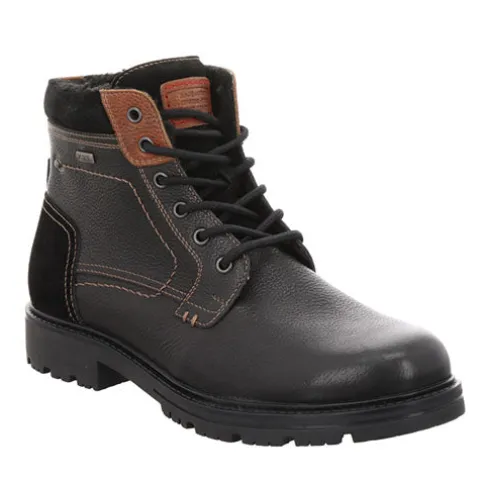 Lækker vinterstøvle med en overdel af glat skind med ruskindsdetaljer på hælen og bag på anklen. Støvlen justeres med snørebånd og lukkes med en lynlås på indersiden af anklen, og en lille trækfane på hælen gør det nemmere at træde i støvlen. Åbningen er polstret for øget komfort. Indvendig har støvlen et varmt foer, og sammen med en tex-membran holdes dine fødder både varme og tørre. Den kraftige gummiydersål er stødabsorberende med et godt vejgreb.