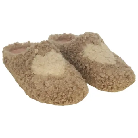 Lun og hyggelig slippers-hjemmesko med en overdel af tekstil i lammeuldslook, dekoreret med et råhvidt hjerte på forfoden. Hele skoen er foeret med et blødt og lunt tekstilfoer. Den udtagelige indersål er polstret, komfortabel og belagt med blødt foer, og den meget fleksible gummiydersål giver et fint fodfæste og beskytter mod kulde nedefra. Der medfølger en sød skopose.