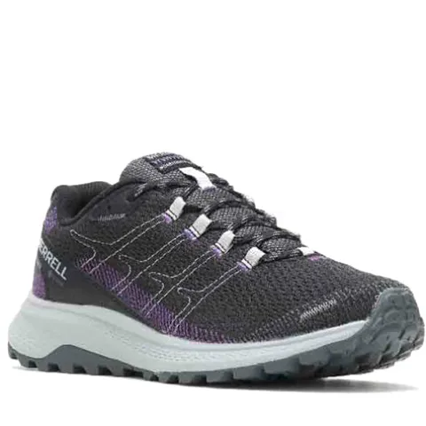 Let og åndbar outdoor sko fra Merrell med Goretex®-membran og sort/grå snørebånd. Fine lilla detaljer på overdelen.
