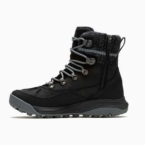 Lækker Siren 4 Thermo Mid Zip W støvle konstrueret specielt til at give komfort, støtte og stabilitet til kvindefoden, selv på de længste vandreture. Overdelen består af blødt, glat skind og ruskind med en vandtæt overfladebehandling, et højt skaft i strik og forstærkning på snuden, siden og hælen. Støvlen justeres med snørebånd og lukkes med en lynlås på indersiden af anklen, og en trækfane bagpå gør det nemt at træde i støvlen. Både snørebånd og trækfane er lavet af genanvendt materiale, og lynlåsen er forbedret til at være en helt ny medial lynlås, som gør det ekstra nemt at få støvlen af og på. Den udtagelige indersål er af PU, mellemsålen er af FloatPro Foam™, og støvlen er foeret med 200 gram af isoleringsmaterialet Primaloft® Gold Eco Series, som er vandafvisende, åndbart, let, slidstærkt og lavet af 100 % genanvendte materialer og giver varme og beskyttelse. Støvlen er udstyret med SOLARCORE® Aerogel isolering under fødderne, et letvægtsisoleringsmateriale oprindeligt designet til NASA, så du aldrig behøver at bekymre dig om at holde fødderne varme, tilmed behandlet med NXT-lugthæmmende materiale. Herudover forkæles dine fødder af en kraftig, slidstærk og fleksibel high performance Vibram® IceTrek® ydersål med en mønsterdybde på 5 mm, lavet af en gummiblanding, som er god til kulde og giver et ekstraordinært godt greb på kolde og tilsneede overflader samt på ujævnt terræn, og som giver en vedvarende trækkraft selv under de vådeste og glatteste forhold.