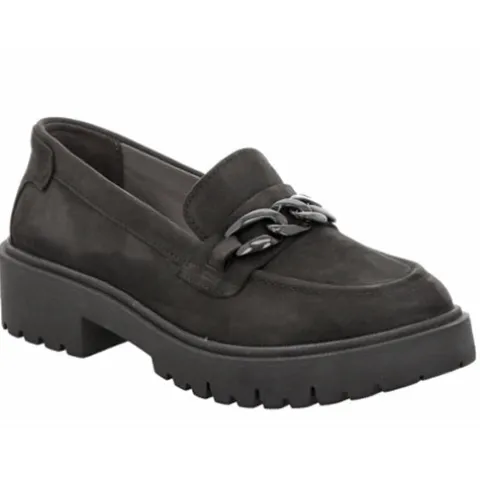 Lækker loafer fra Natural Sense. Overdelen er af ruskind, dekoreret med en sort kæde på vristen. Indersålen er blød og åndbar, og den grove ydersål er stødabsorberende, fleksibel og giver et godt fodfæste. Her får du et lækkert par loafers til både daglig brug og fest.