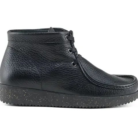 Komfortabel og fleksibel Emma ankelstøvle fra Nature. Overdelen er af blødt “milled” skind og har en håndsyet mokkasinsyning på forfoden. Støvlen justeres og lukkes med bomuldssnørebånd. Foringen på pløsen og indersålen er af OnSteam®, som er Nature Footwears mikrofibermateriale, der både føles som og har de samme egenskaber som læder, men er lettere, blødere og mere fleksibelt. Indersålen er blød og komfortabel, og den stødabsorberende ydersål er af ergonomisk naturgummi med korkrester, hvilket giver et karakteristisk udtryk samt gør støvlen fleksibel og komfortabel med et godt fodfæste. Designet i Danmark, produceret i Portugal.