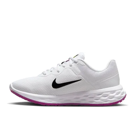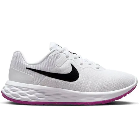 Lækker Revolution 6 NN W sko med en overdel af åndbart meshtekstil med syntetdetaljer. Skoen lukkes med snørebånd, som er lavet af 100 % genanvendt polyester, imens den polstrede åbning giver øget komfort og støtte, og hælforstærkningen giver øget sikkerhed. Indersålen er komfortabel, og en skummellemsål giver et blødere løb end Revolution 5. Ydersålen har et computergenereret design, der skaber en naturlig stempeleffekt, mens du løber, og giver mere stødabsorbering og fleksibilitet med et slidstærkt greb. Fås i halve størrelser.