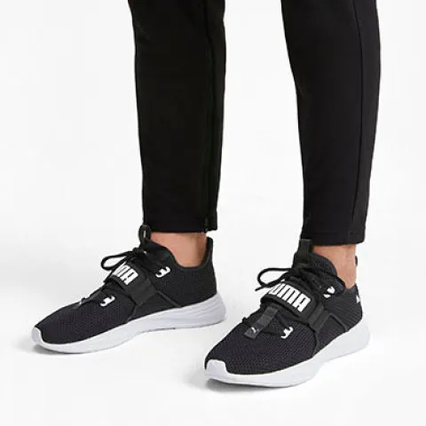 Smart Persist XT Knit sko med en overdel af striktekstil dekoreret med Puma-logo, en ikkejusterbar elastiksnøre samt en bred elastikrem med logo over vristen. Skoen er en slip on-model, og en trækfane foran gør det nemt at træde i skoen. SoftFoam-indersålen er blød og komfortabel, og den fleksible ydersål er stødabsorberende med et fint fodfæste.