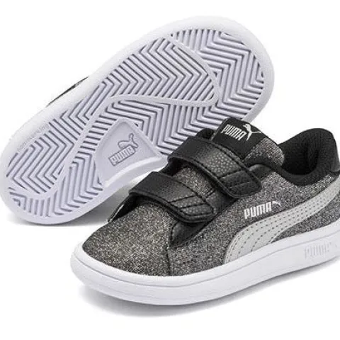 Fin sort glimmer sko fra Puma. To velcroremme og SoftFoam i sålen.
