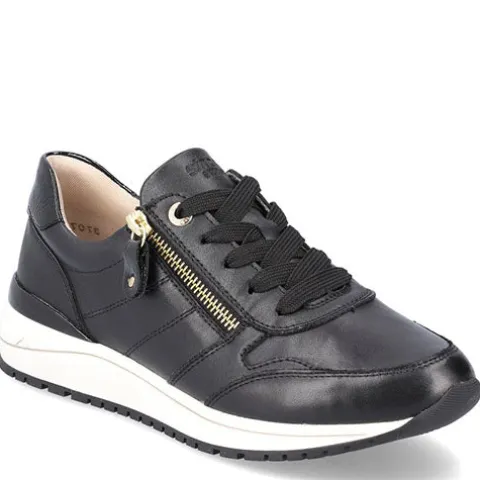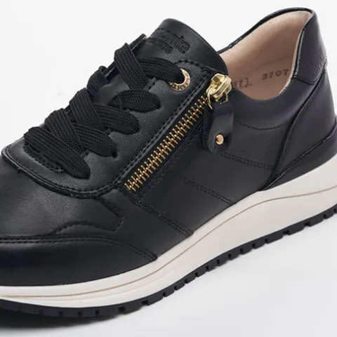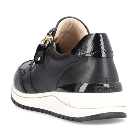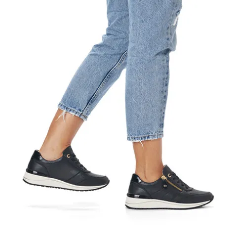 Her har du en moderne, let og lækker sneakers fra Remonte med lynlås og snøre. Den funktionelle lynlås, som sidder på ydersiden, gør det nemt at tage skoen på og af. Skoen er stødabsorberende og fleksibel, og den udtagelige sål er blød, så du er sikret god støtte og komfort.