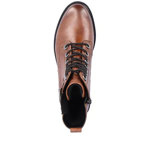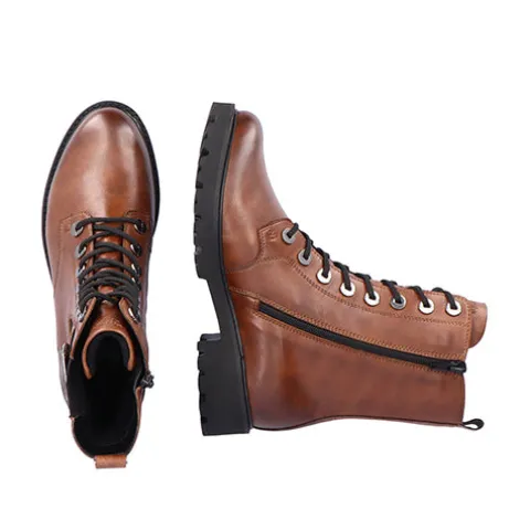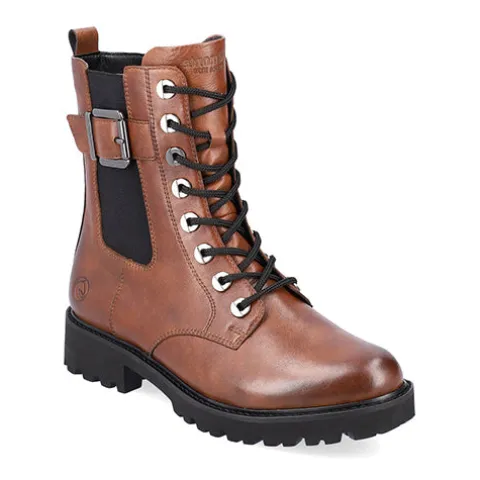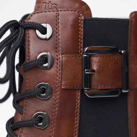 Lækker støvle med let, varmt foer. Overdelen er af glat skind med syntetdetalje på hælen og en lille trækfane. Støvlen justeres med snørebånd og lukkes med lynlås på indersiden af anklen. På ydersiden af anklen giver et elastikpanel med pyntespænde en øget rummelighed, og du oplever en øget komfort med den ekstra plads ved forfoden. Støvlen er let og stødabsorberende. Indersålen kan tages ud, og den grove ydersål giver et godt fodfæste.
