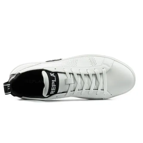 Lækker og moderne Polaris Perf Camo sneaker fra Replay. Overdelen er af blødt glat læder med perforeret detalje på ydersiden samt logo på pløsen. Hælen har en sort detalje samt trækfane, og den hvide ydersål har en sort detalje. Skoen lukkes med snørebånd. Den udtagelige indersål er blød og komfortabel, og den fleksible gummiydersål giver både et godt fodfæste og en god bevægefrihed til foden.
