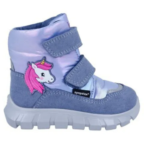Dejlig og vandtæt vinterstøvle med varmt foer. Overdelen af syntet og tekstil changerer i flere farver og har refleksdetaljer på snude og hæl samt et enhjørningehoved på ydersiden af hælen. Støvlen lukkes med to velcroremme, og åbningen er polstret for øget komfort. Indvendig har støvlen et blødt, varmt foer, og sammen med en åndbar, 100 % vandtæt og PFAS-fri Sympatex®-membran holdes fødderne varme og tørre. Indersålen kan tages ud, og den fleksible ydersål er stødabsorberende med et godt fodfæste.