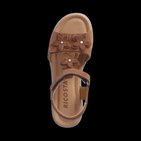 Fine sandaler fra RICOSTA til de varme sommerdage. De luftige børnesandaler har et overmateriale af ægte ruskind og er dekoreret med tre udstansede blomster på forfoden. Disse er også lavet af læder og har samme farve. Hver blomst er dekoreret med en nitte i midten. Ydersålen er lavet af slidstærkt PU. En mikrofiber indersål sikrer en behagelig fodfølelse. Den søde sandal lukkes med en praktisk velcrolukning, der kan betjenes hurtigt og nemt. En fantastisk børnesko til skole og fritid!