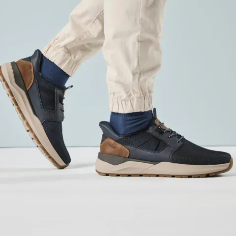 Dejlig Ready2GO sko, som du nemt kan træde i uden at bukke dig eller bruge dine hænder. Skoen er således en slip-on-model med en overdel af tekstil med imiteret glat skind på hæl, sider, pløs og ved elastiksnøren. En ikkejusterbar elastiksnøre sørger for tilpasning til foden i løbet af dagen. Med vidde H-H½ er der plads til den bredere fod. Den udtagelige indersål er komfortabel, og den godt mønstrede ydersål med gummibelægninger er stødabsorberende med et godt fodfæste.