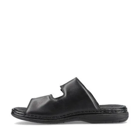Herresandal fra Rieker i blødt skind. Sandalen har to velcroremme og en blød eftergivende dæksål. Sandalen fra Rieker har god støtte på begge sider, da den lukker til på siden af foden. Fleksible og stødabsoberende såler. Rieker sandalen egner sig også godt som hjemmesko.