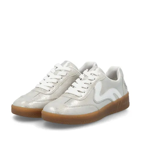 Supersmart Metallic low-top sneaker med en overdel af højkvalitets syntetisk læder med en hvid detalje på ydersiden. Skoen lukkes med snørebånd, og åbningen er polstret for øget komfort. Indvendig har skoen et komfortabelt tekstilfoer, og den udtagelige indersål er polstret, blød og støddæmpende. Den fleksible TR-ydersål er slidstærk og stødabsorberende med et godt vejgreb. Skoen er 100 % vegansk.