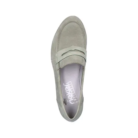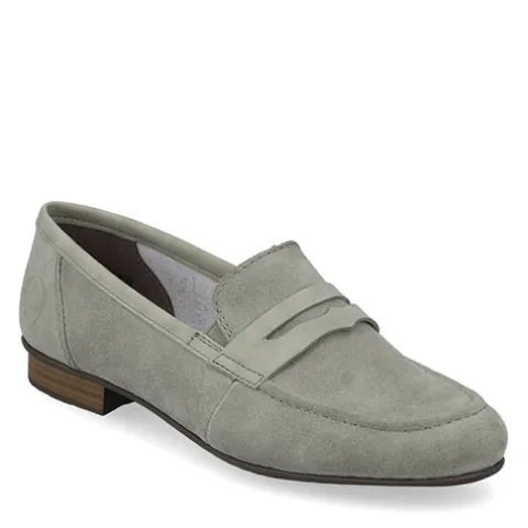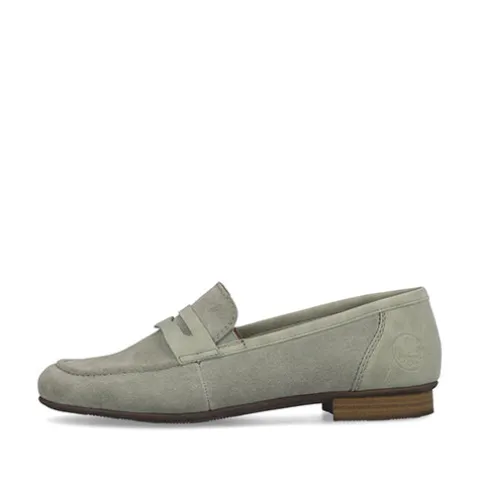 Elegant og lækker pennyloafer fra Rieker. Overdelen er blødt ruskind, og den bløde indersål samt skoens Antistress-konstruktion gør skoen stødabsorberende, fleksibel, let og rummelig. Skoen har elastik i begge sider af åbningen, som gør det nemmere at tage den af og på. Her får du et par loafers perfekte til både hverdag og fest.